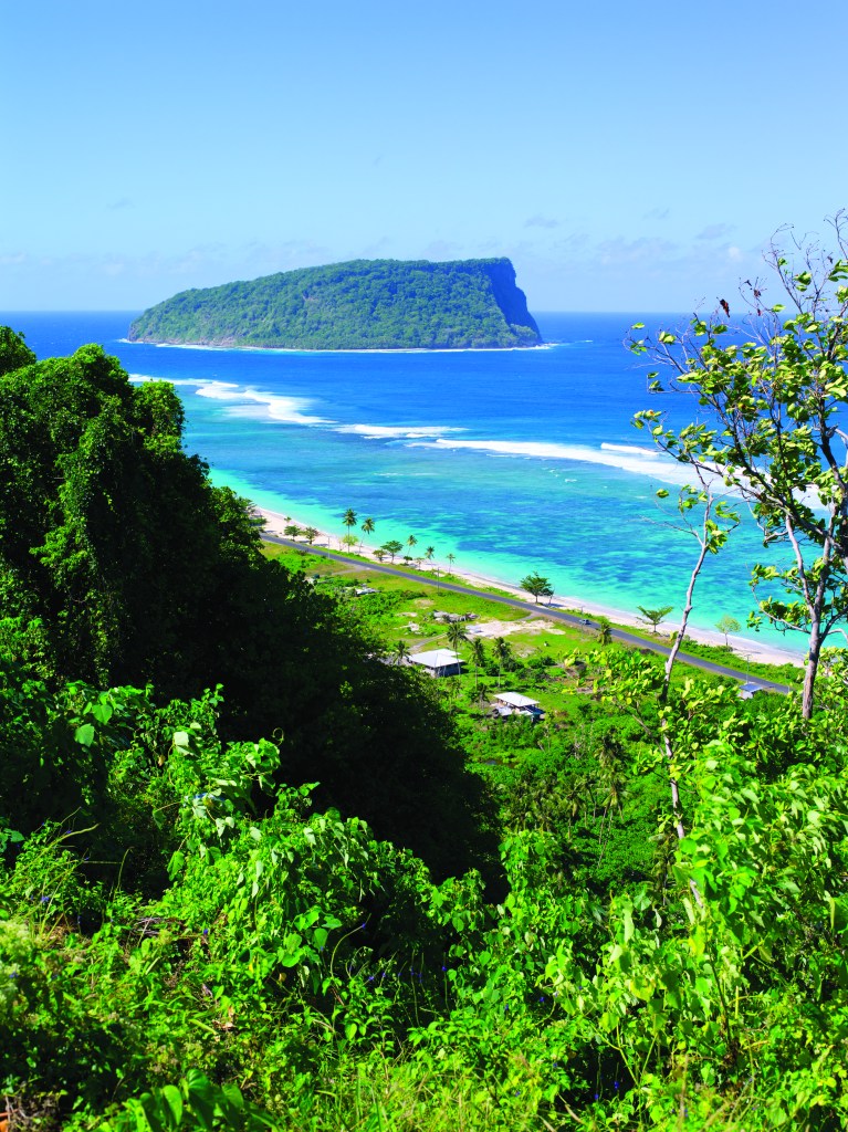 The island of Upolu in Western Samoa is a small island in the South Pacific with a land area of 1115sq km. The island is rich in lush tropical forests, waterfalls and beautiful beaches. The center of the island consists of mountainous hills, while the coastline is mostly beach, with some lava cliffs. The majority of the population lives around the coast, in villages or in the main town on the north coast, Apia.